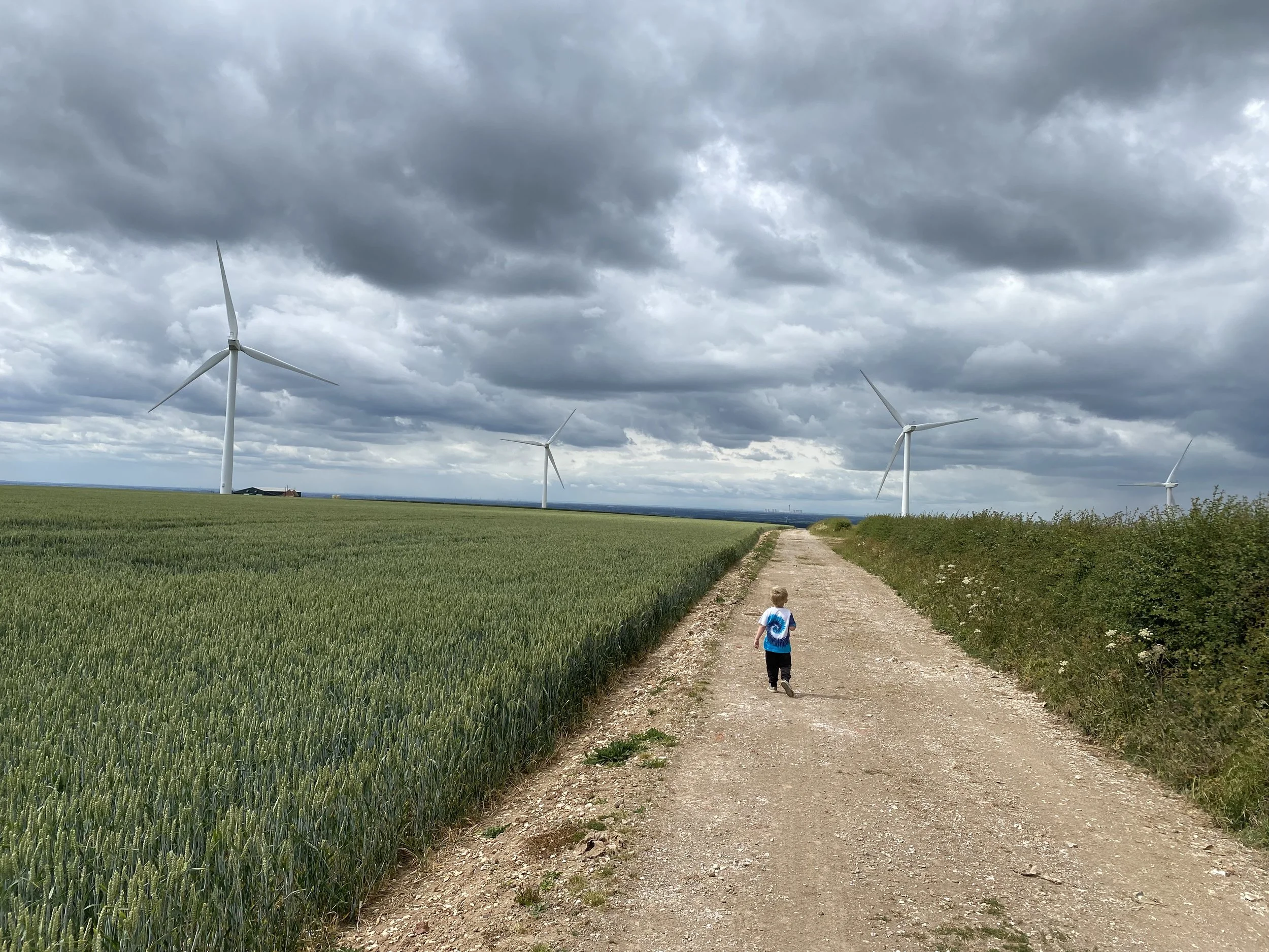 The next day, I returned to that same greenway — this time with my four-year-old son. He’s obsessed with wind turbines, or “wind fans” as he calls them. We counted them together: one, two, three… all the way to eleven.